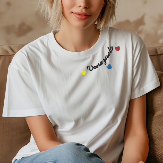 Short Sleeve T-Shirt Embroidery "Venezuela with Heart" Collar