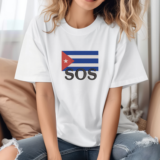Short Sleeve T-Shirt Embroidery Cuban Flag "SOS"
