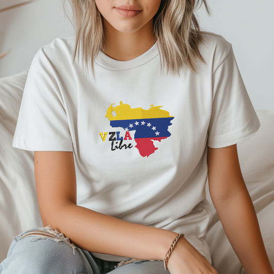 Short Sleeve T-Shirt Embroidery Venezuelan Map "VZLA Libre"